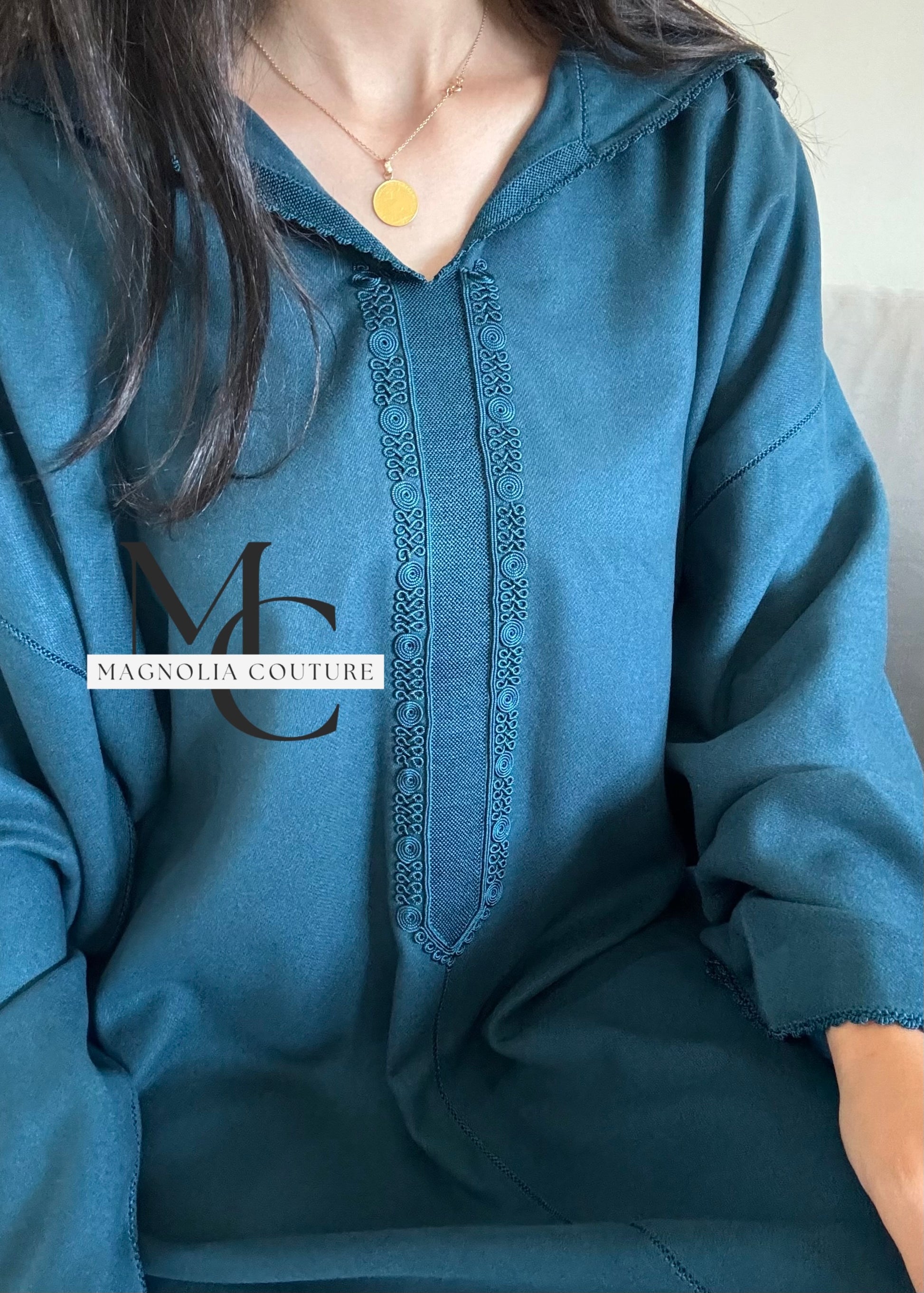 Description : Jellaba de la collection « Héritage » qui fusionne harmonieusement le travail délicat de malam et la finesse de la randa. Cette pièce est confectionnée entièrement à la main, raconte une histoire riche de tradition marocaine. Les heures d'artisanat passionné investies dans chaque détail font de cette jellaba une célébration vivante de l'héritage culturel.
