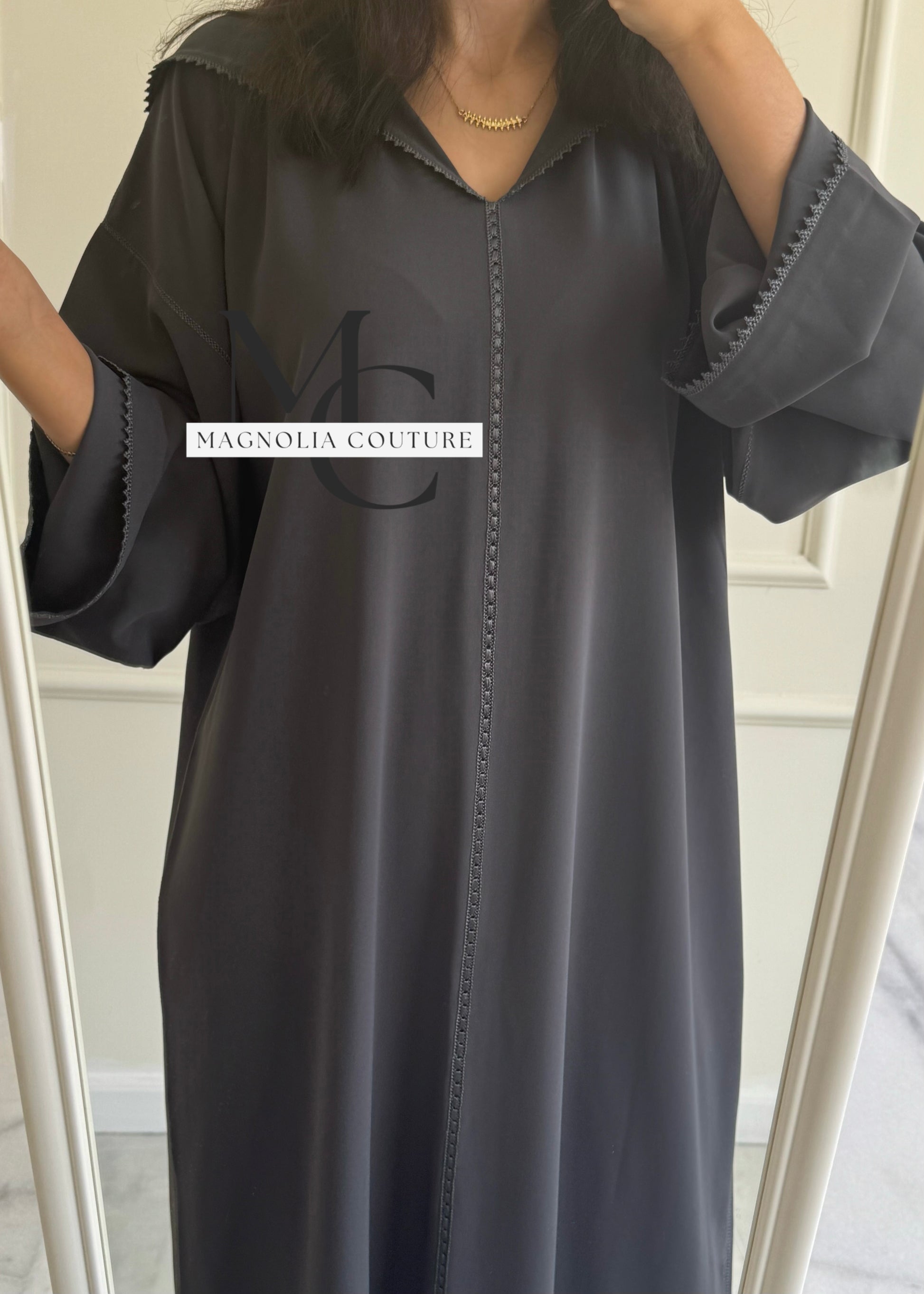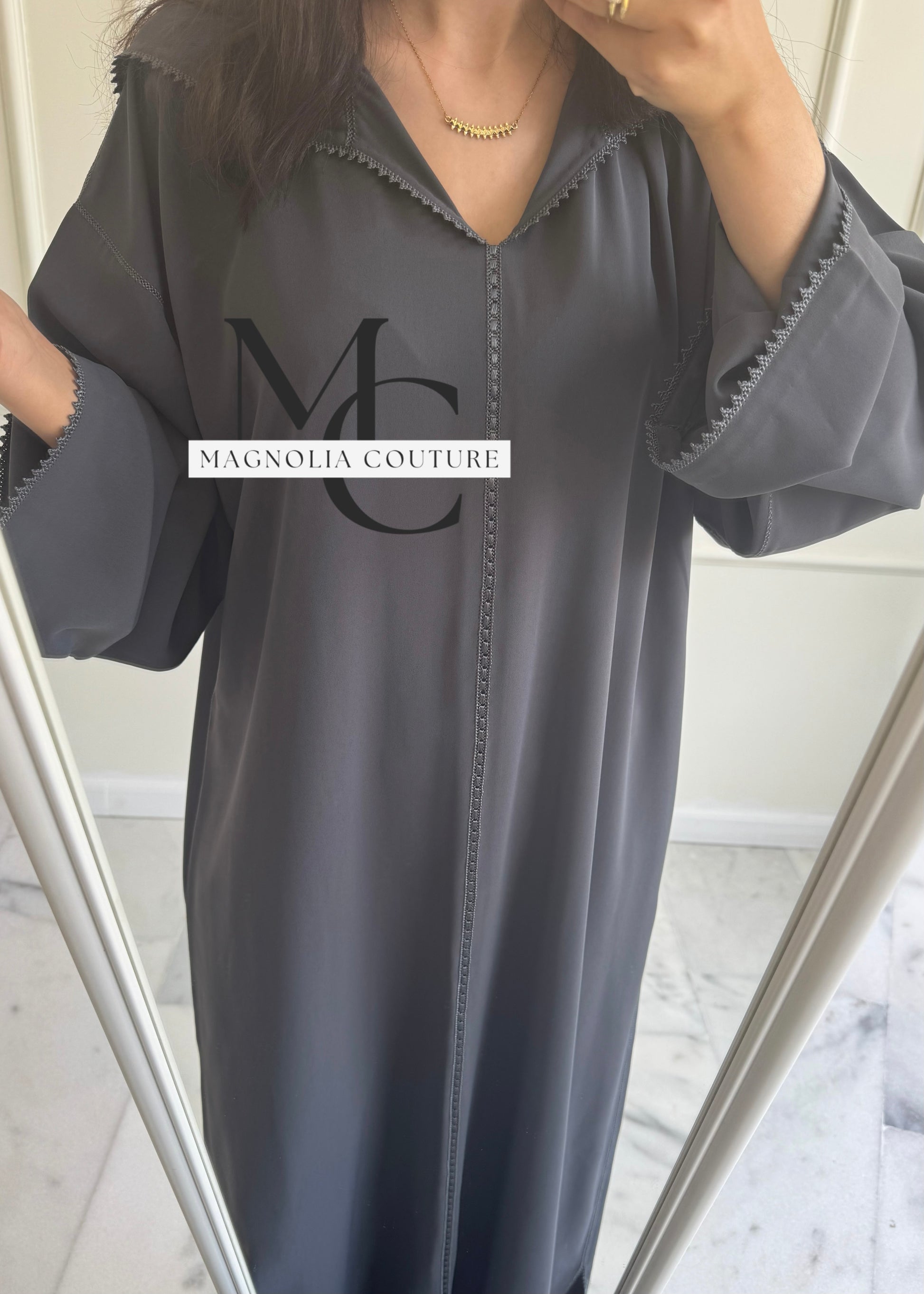 La djellaba est travaillée avec randa simple. Une tenue raffinée et élégante.
