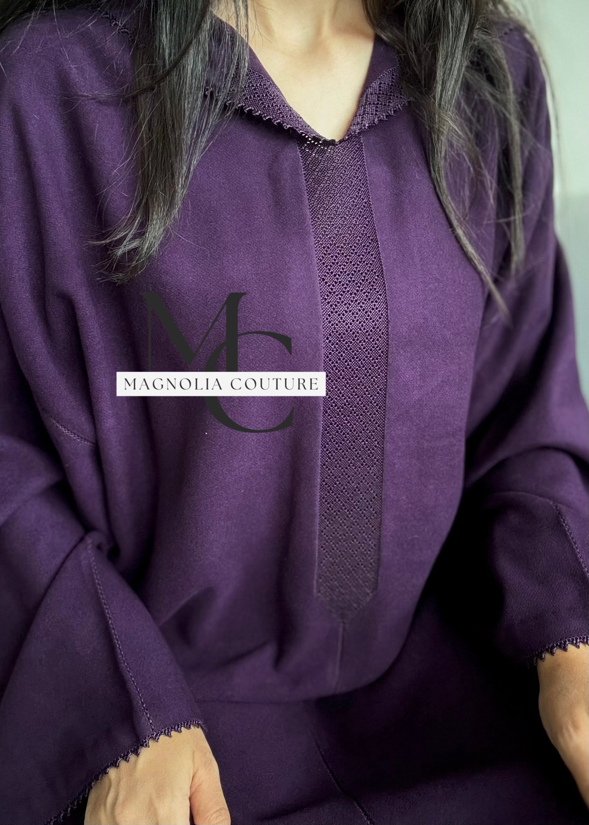 Description : La djellaba travaillée entièrement à la main avec randa hssira et décorée avec des gouzas.